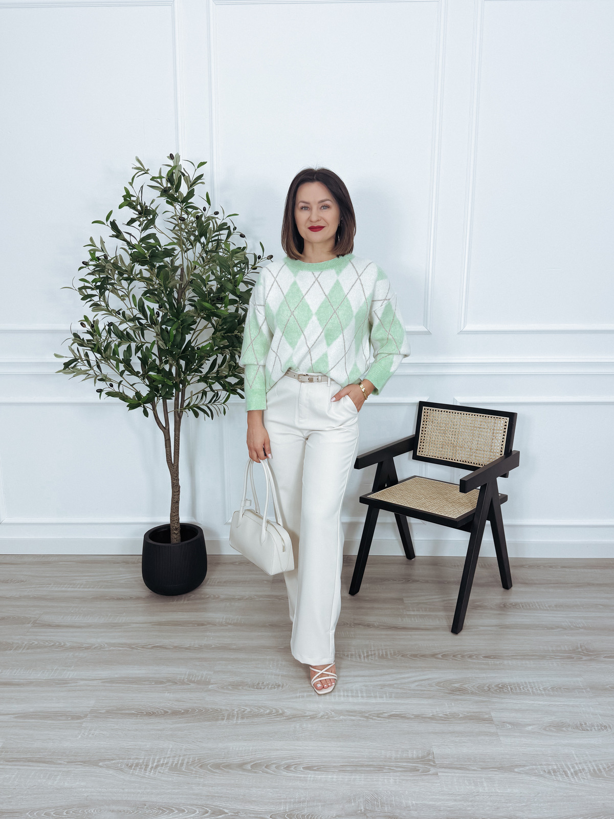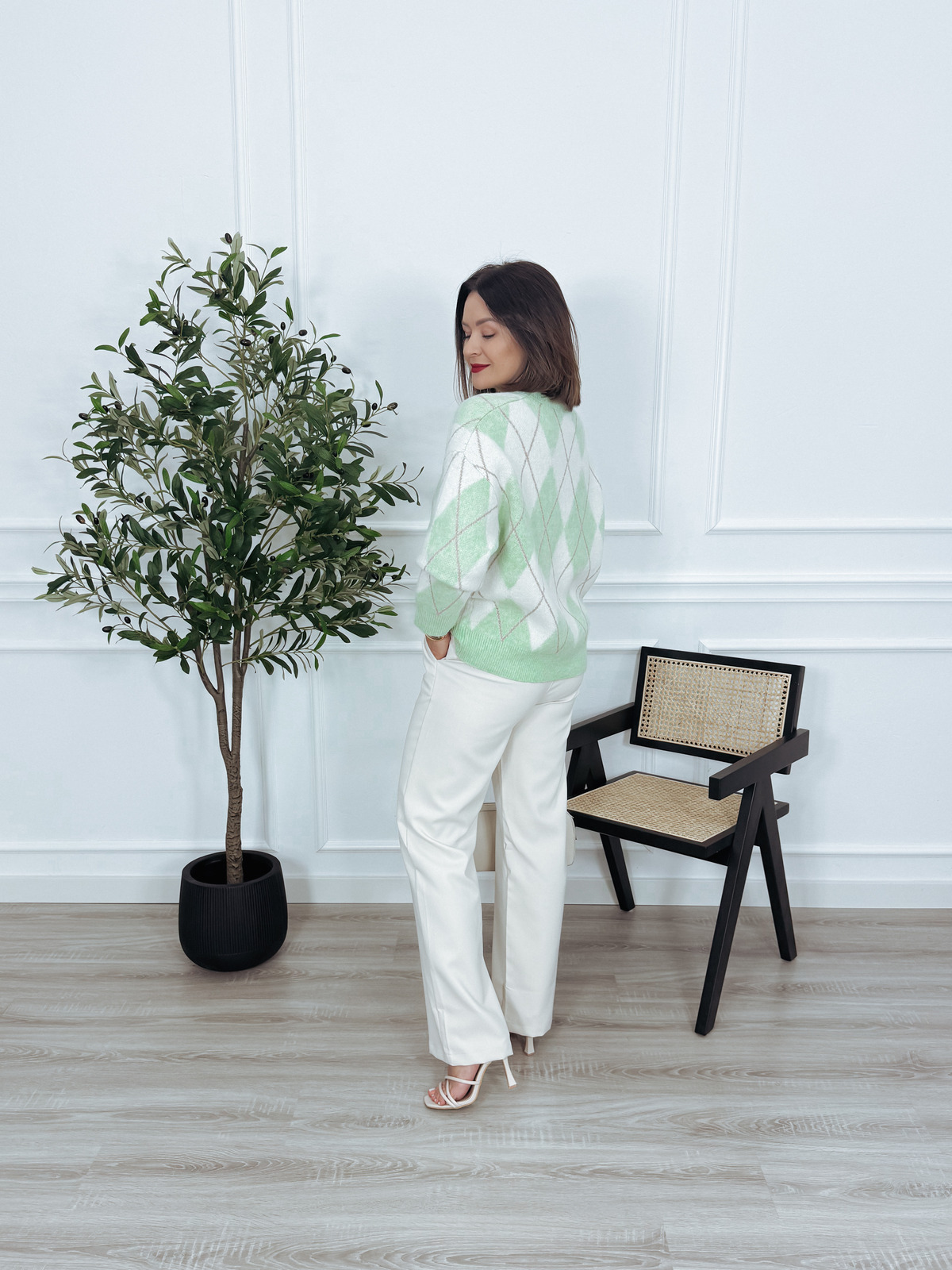 Bardzo przyjemny dla ciała sweter w romby. Nie gryzie. Idealny na wiosnę.🖤