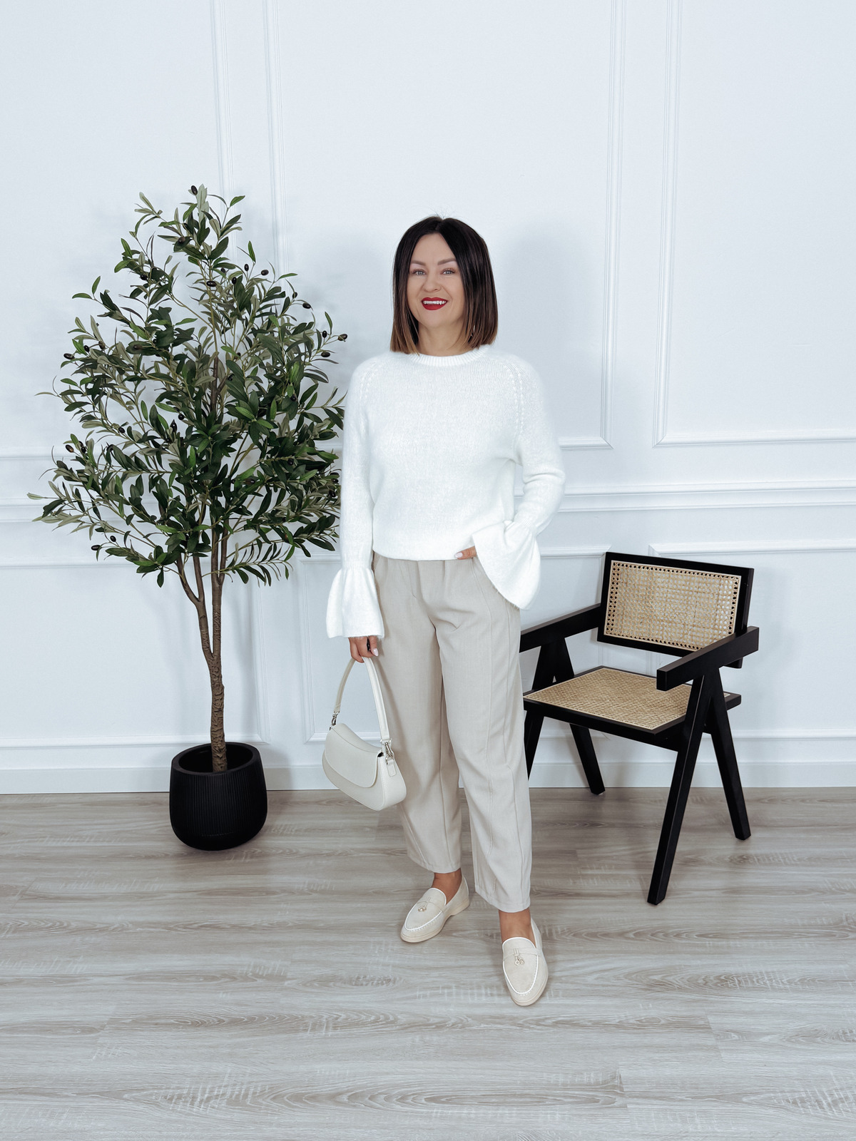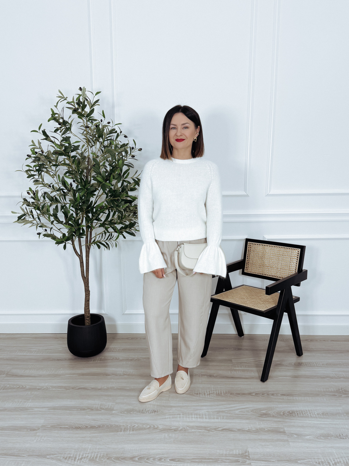 Sweter z baby alpaką i wełną | rękaw dzwonek | śmietankowy MAYKA