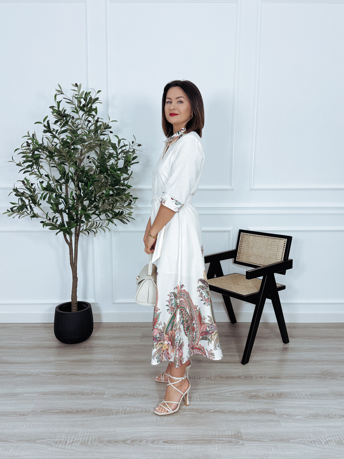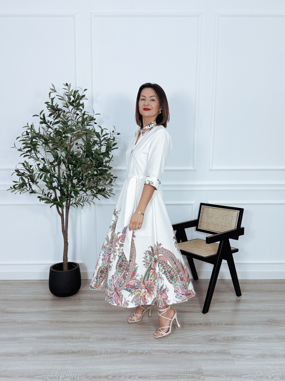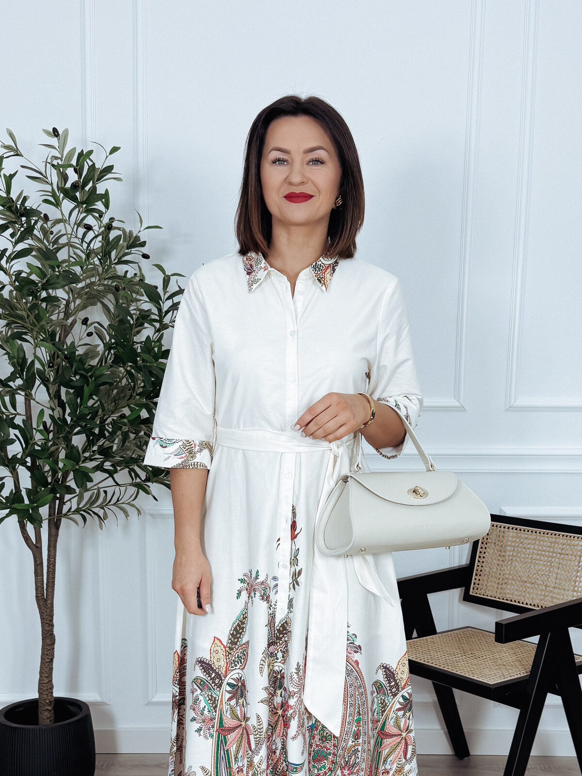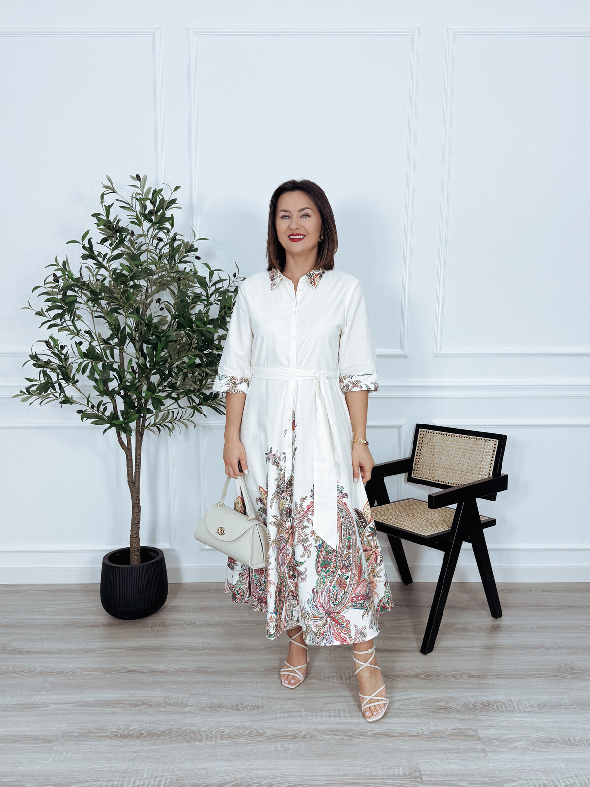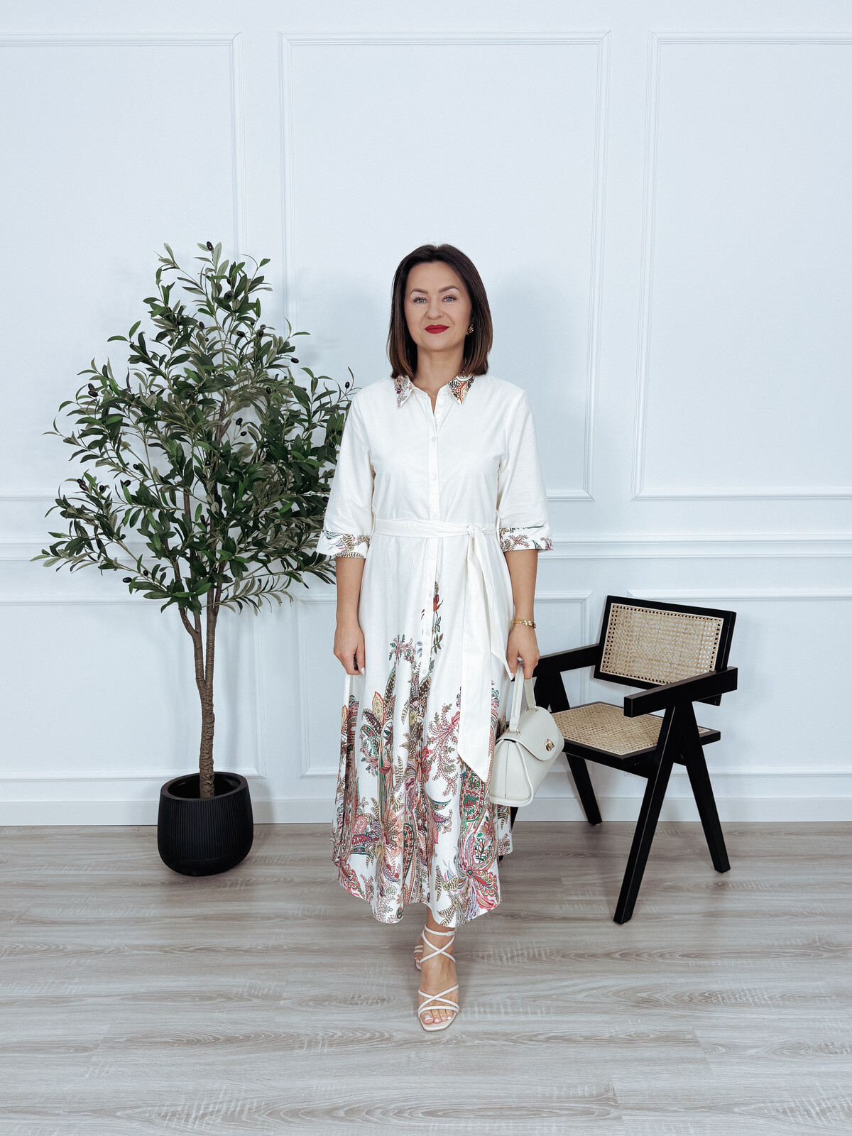 Szmizjerka bawełniana maxi ecru we wzory RAMONA