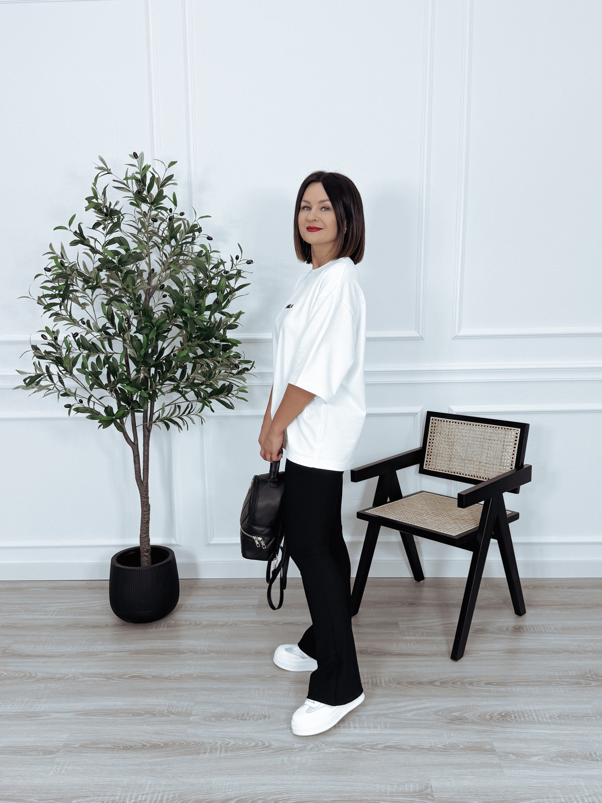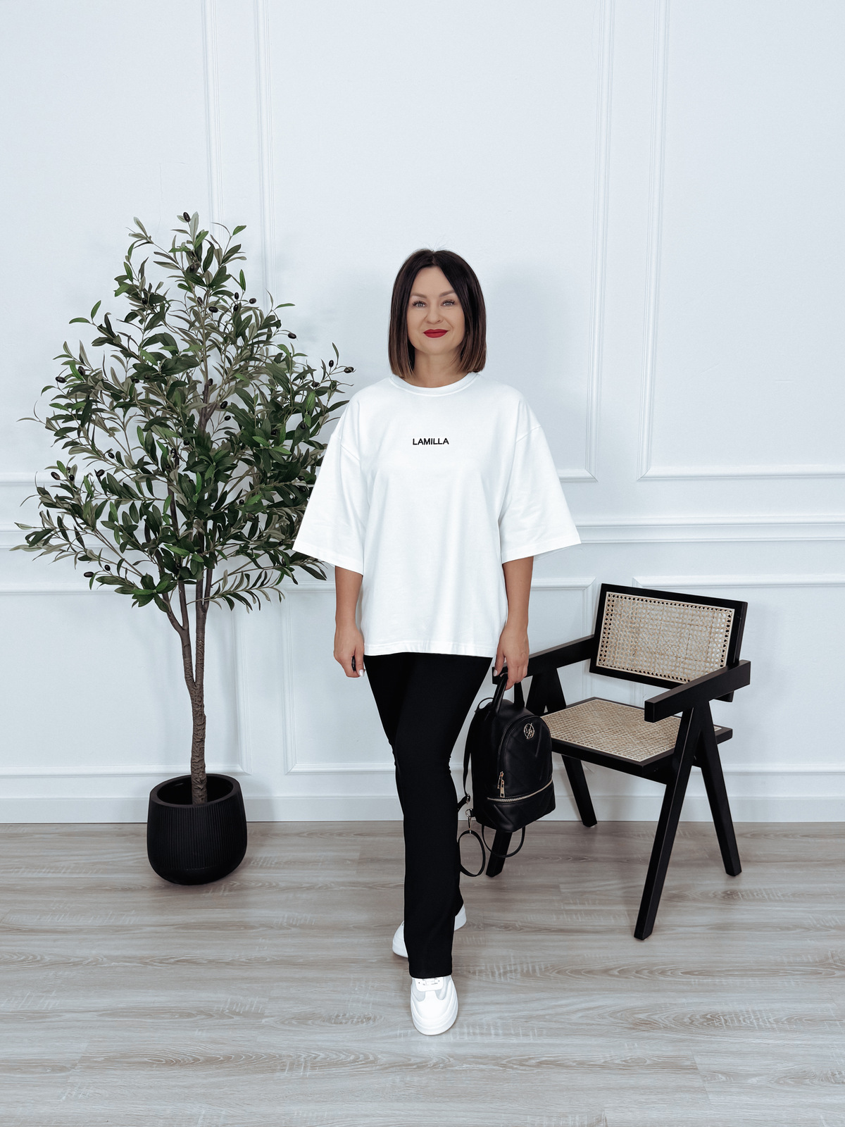 T-shirt oversize premium biały z haftem LAMILLA