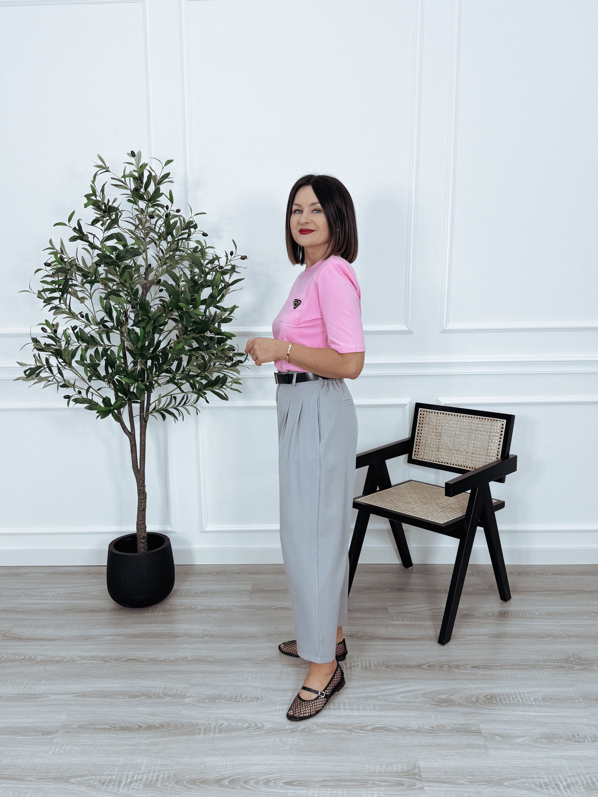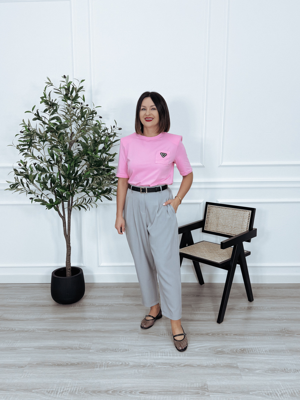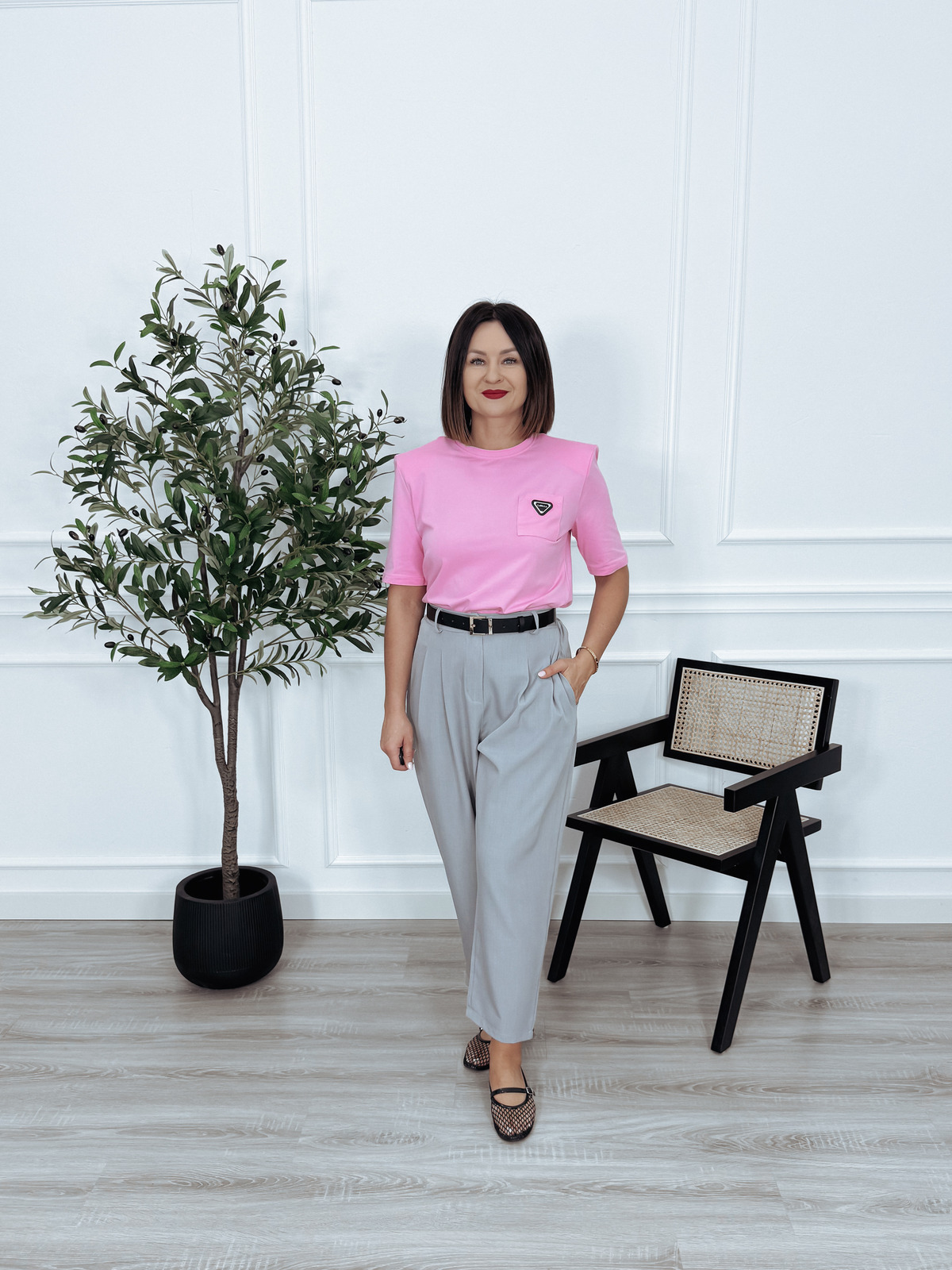 T-shirt premium z poduszkami i kieszonką puder róż MILLA